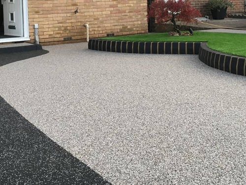 Cold mixed on site using a process that ensures every particle of stone is covered in resin. During the laying process, voids are created that allows the water to drain through.